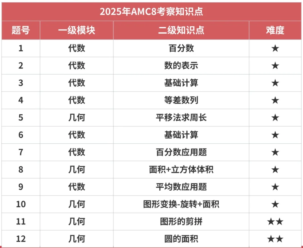 2025年AMC8数学竞赛已经结束了,准备明年第一次参与AMC8数学竞赛的考生一定对这些问题很好奇:AMC8数学竞赛难度大吗?AMC8数学竞赛考察内容都有什么?AMC8竞赛考试题型有哪些?