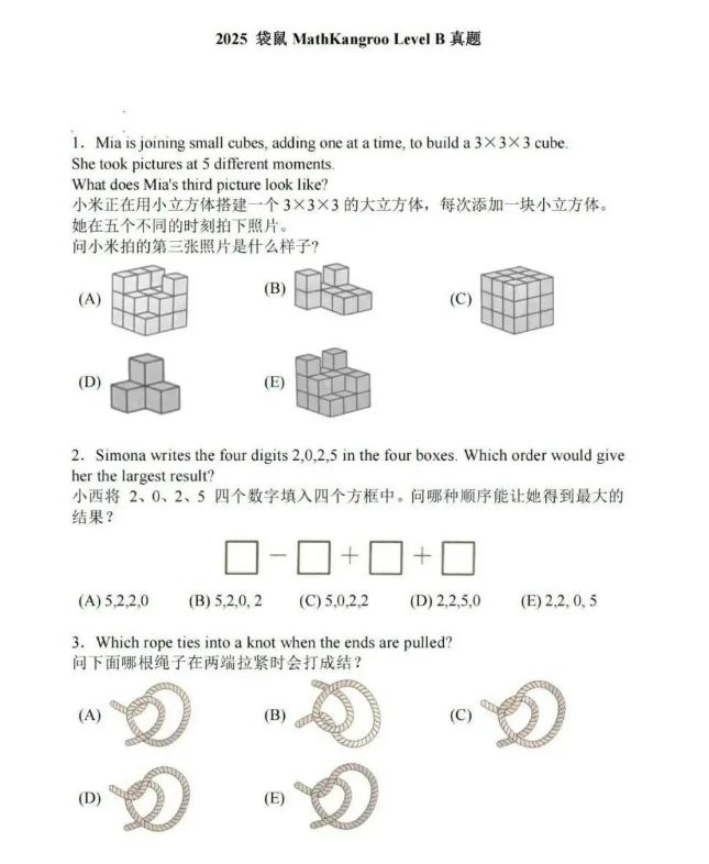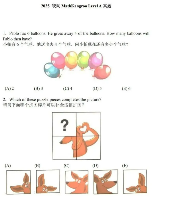 袋鼠思维挑战所考察的知识点难度并不高,其重点在于对孩子数学思维能力的培养。