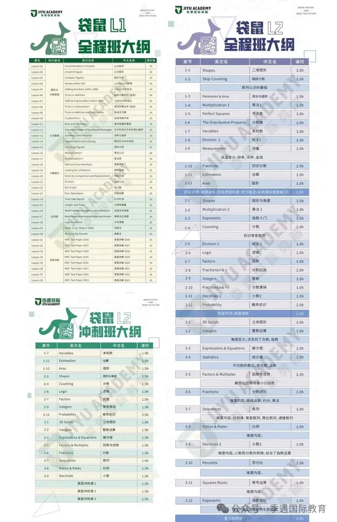 季遇教育专为首次参加Level 1(1~2年级)和Level 2(3~4年级)学生设置全程班,冲刺班。