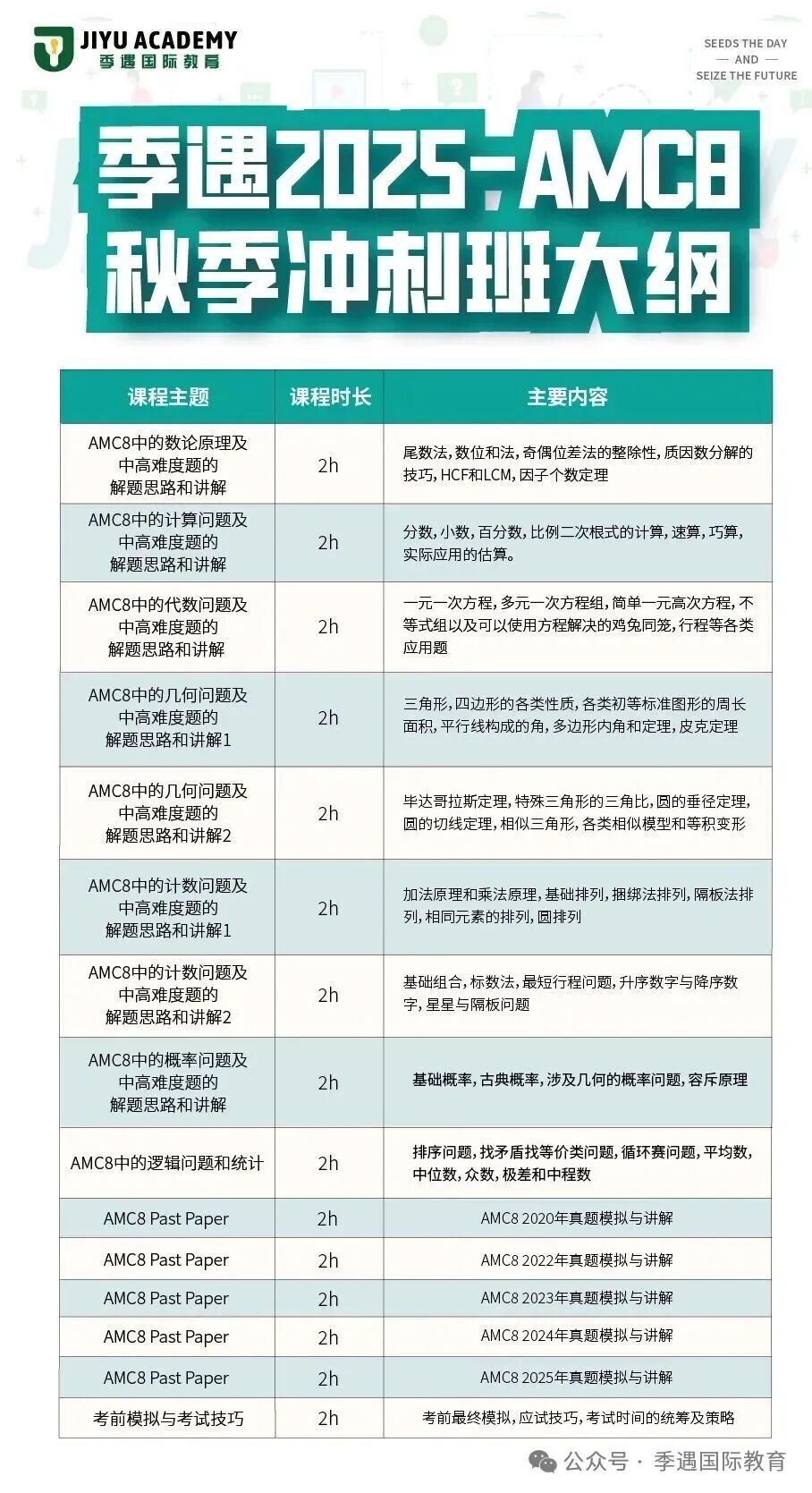 考AMC8竞赛到底要多少分才能拿奖?2026 年会不会更难啊?距离2026年的AMC8竞赛考试备考时间不足三个月,这些都是大家比较关注的问题,下面给大家详细介绍下,同时季遇国际教育为大家开设了AMC8竞赛培训课程