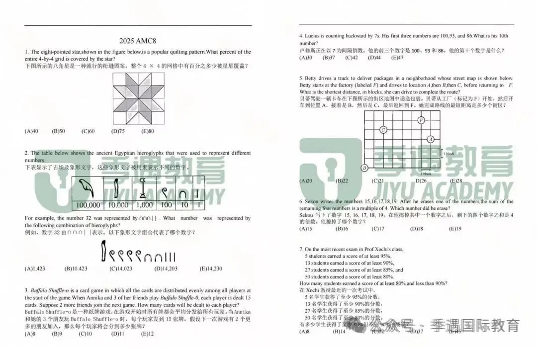 AMC8竞赛适合年级:8年级以下学生