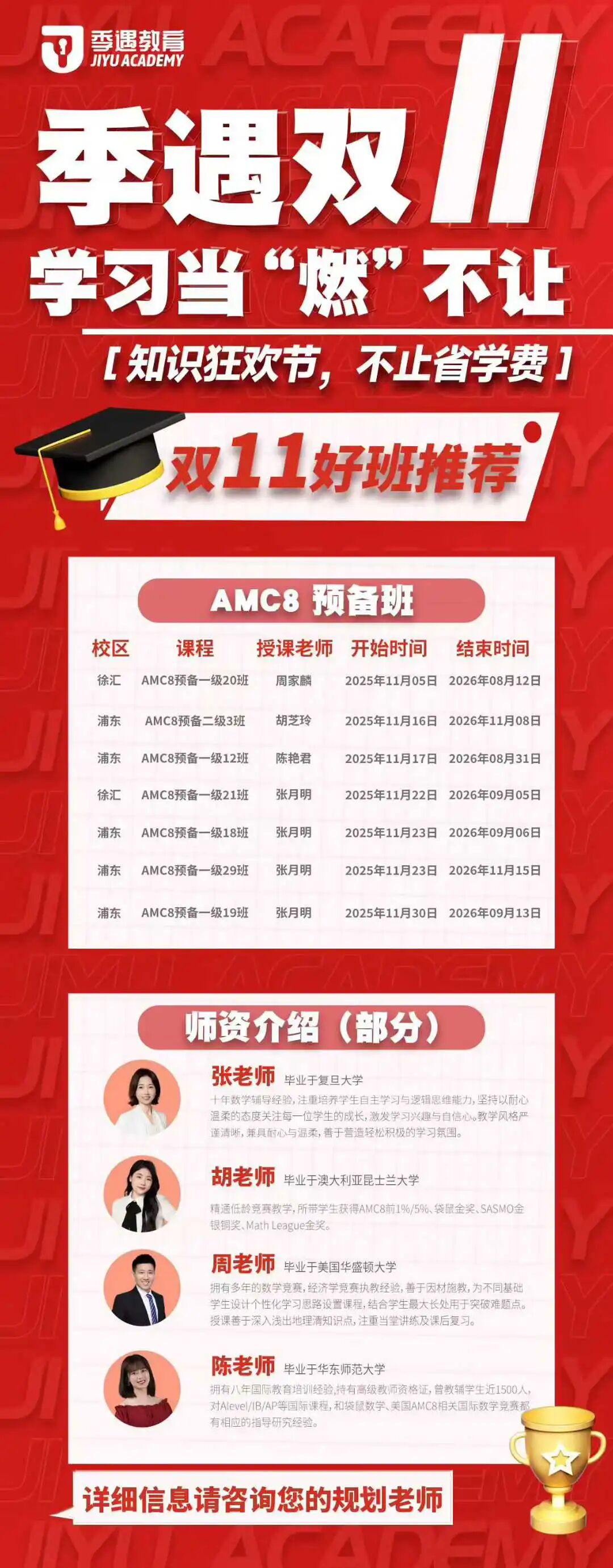 季遇AMC学员答题正确率提升至75%以上,老师可轻松破解几何/数论等亚洲学生数学痛点。助力学生解决AMC课程难点,冲刺5%或1%奖项。
