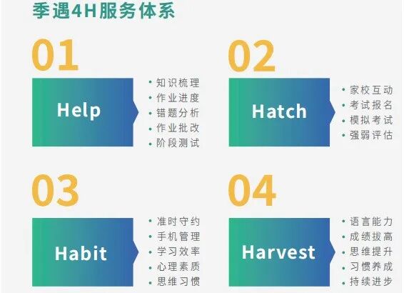 季遇独家4H体系,即Help、Hatch、Habit、Harvest,在季遇学习,我们不仅注重在课上帮助孩子重构数学框架,提升数学能力,在课后更是注重帮孩子养成一个良好的学习习惯,收获的不仅仅是袋鼠和SASMO竞赛的证书、数学能力的提升,更能收获一个良好的学习习惯。